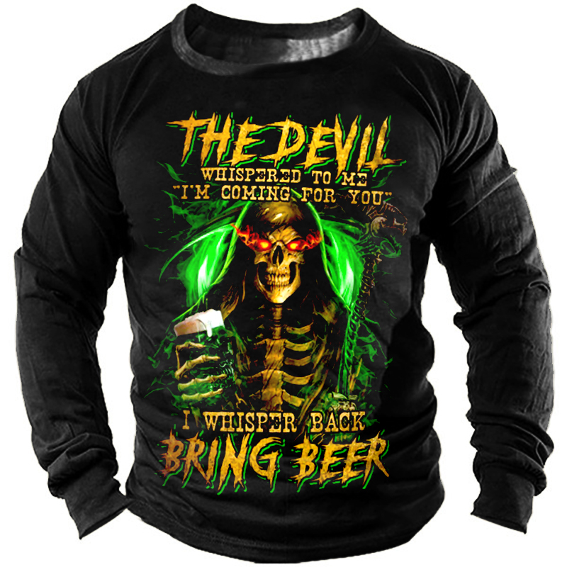 Bring Beer Grim Reaper Green Print Men's Retro Outdoor Tactical T-shirt