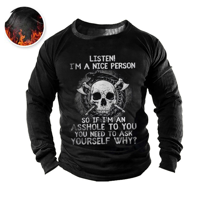 Listen I'm A Nice Person So If I'm An Asshole To You You Need To Ask Yourself Why Black Dragon And Skull Print Men's Retro Outdoor Tactical T-shirt