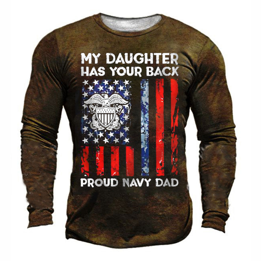 My Daughter Has Your Back Proud Navy Dad Print Men's Retro Outdoor Tactical T-shirt