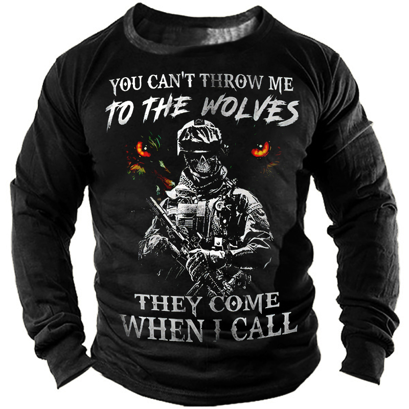 You Can't Throw Me To The Wolves Print Men's Retro Outdoor Tactical T-shirt
