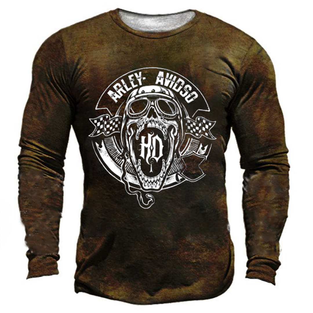 HD Racing Skull Print Men's Retro Outdoor Tactical T-shirt