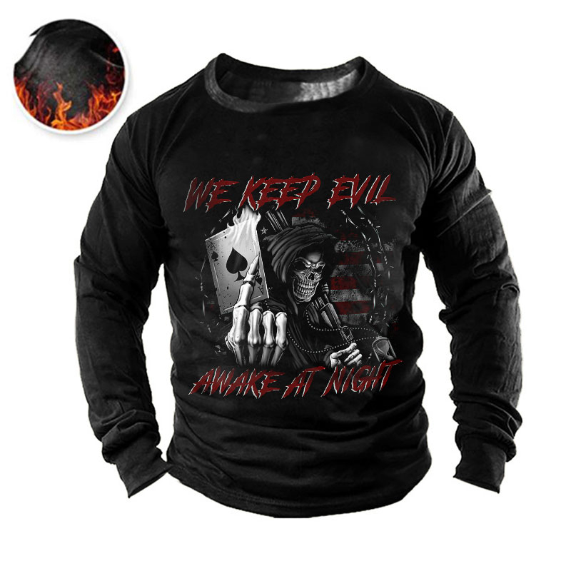 We Keep Evil Awake At Night American Flag Playing Card Skull Print Men's Retro Outdoor Tactical T-shirt