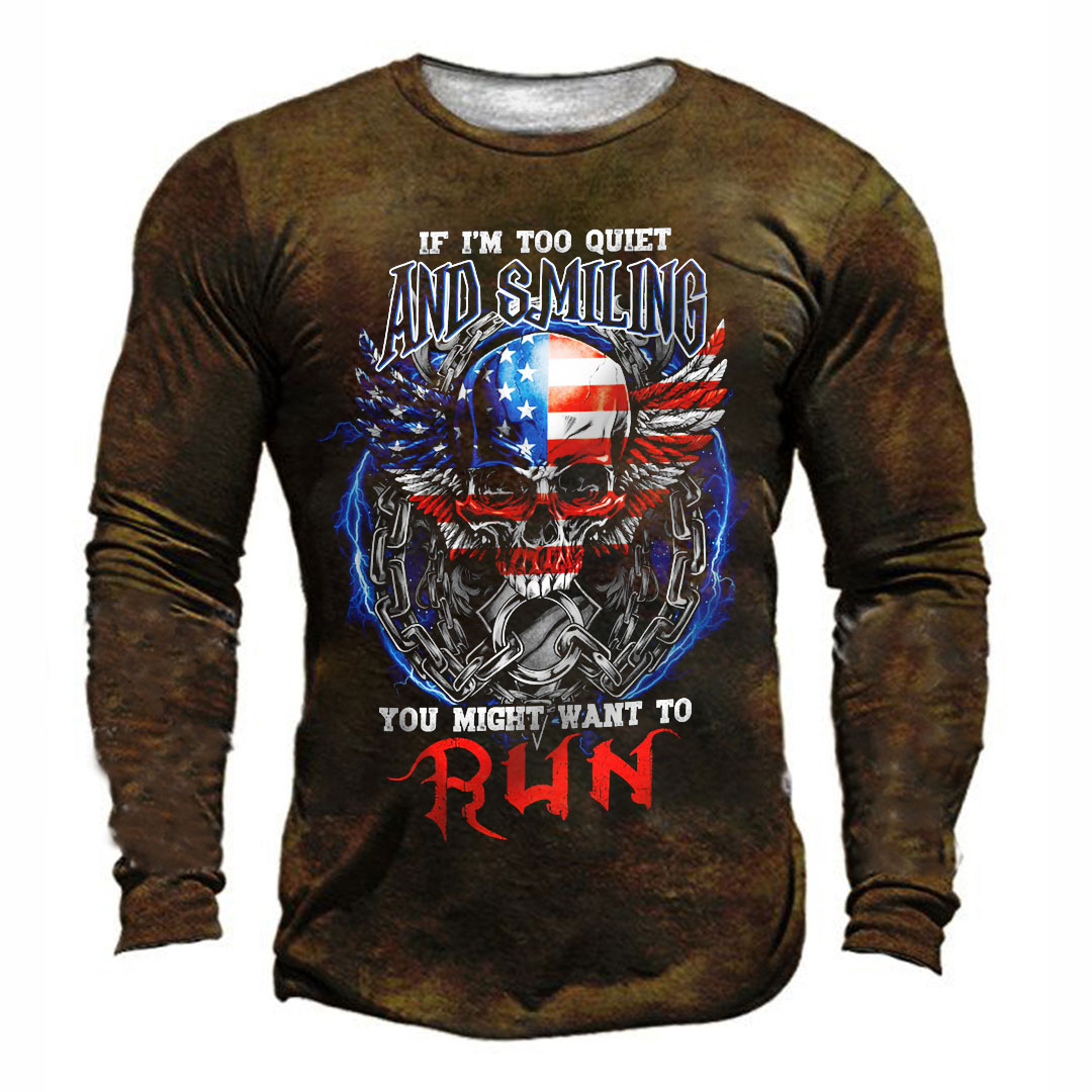If I'm Too Quiet And Smiling America Skull Wings Print Men's Retro Outdoor Tactical T-shirt