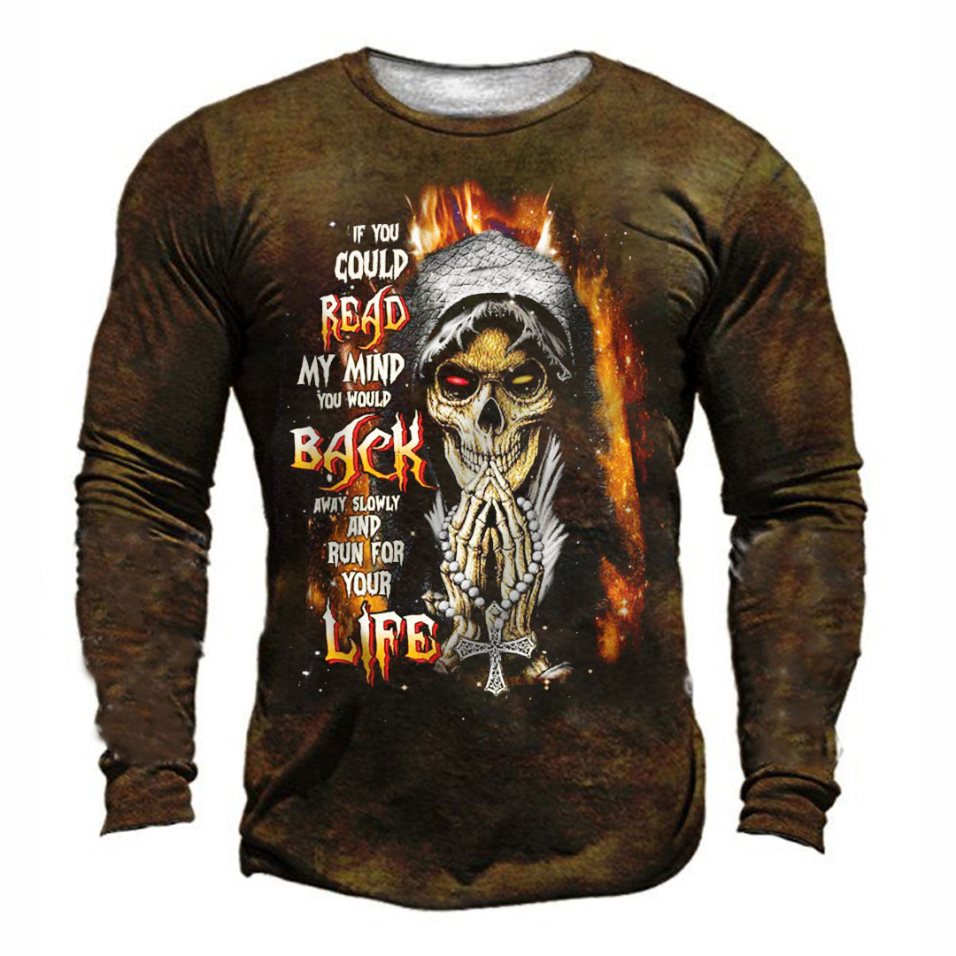 If You Could Read My Mind Skull Print Men's Retro Outdoor Tactical T-shirt