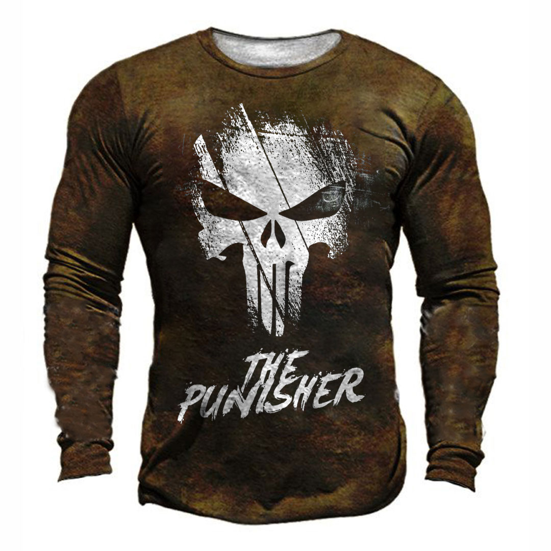 The Punisher Skull Print Men's Retro Outdoor Tactical T-shirt
