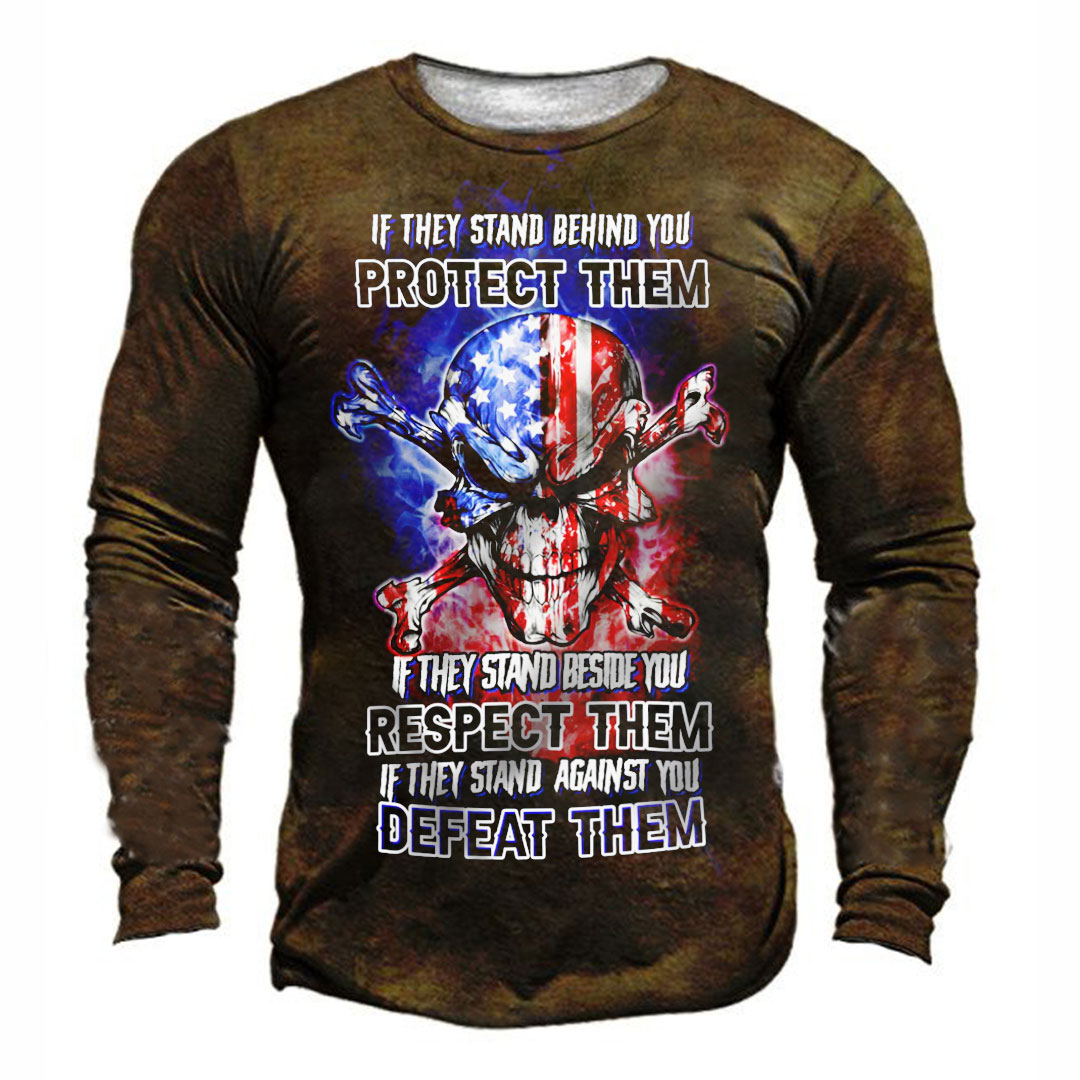 If They Patriotic Skull Print Men's Retro Outdoor Tactical T-shirt