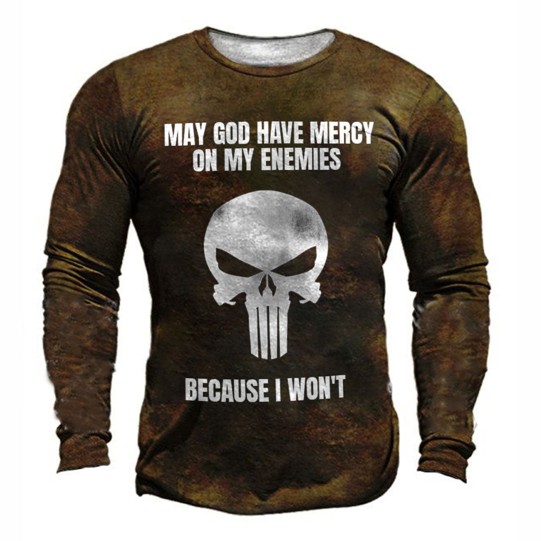 MAY GOD HAVE MERCY ON MY ENEMIES BECAUSEI WON'T Print Men's Retro Outdoor Tactical T-shirt