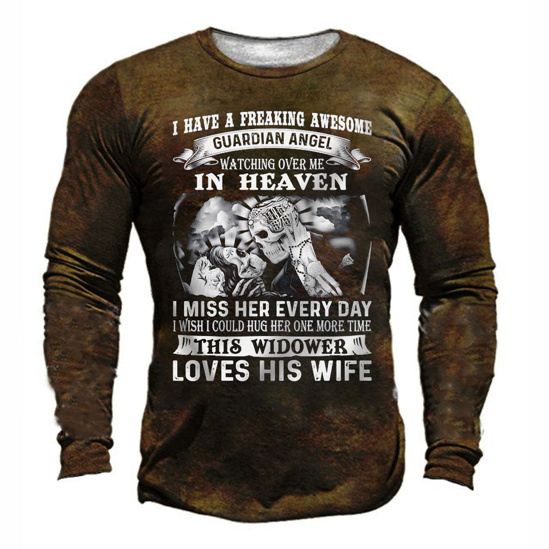I Have A Freaking Awesome Guardian Angel Watching Over Me In Heaven This Widower Loves His Wife Print Men's Retro Outdoor Tactical T-shirt