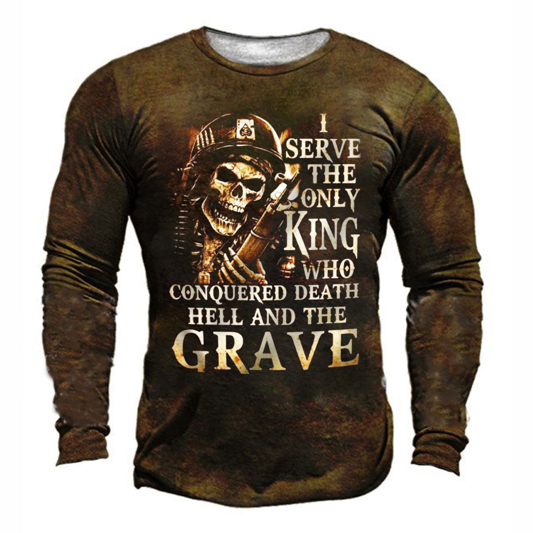 SERVE THE ONLY KING WHO CONQUERED DEATH HELL AND THE GRAVE Print Men's Retro Outdoor Tactical T-shirt